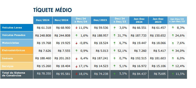 Além do aumento no tíquete médio, o relatório também aponta um crescimento de 13,4% no número de pessoas contempladas, totalizando 90.800 contemplações contra 80.050 do ano anterior.